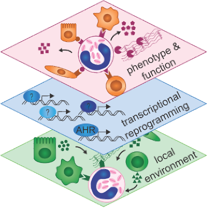 Our group focuses on myeloid cell biology, in particular the role of eosinophils and macrophages in tissue homeostasis and disease. Eosinophils are pathologic effector cells in allergies and asthma, but also play homeostatic roles in tissue repair and immune modulation. As tissue-adapted cells, eosinophils take on specific transcriptional and functional programs, which enables them to maintain healthy tissue functions and contribute to the immune response. We identified the environmental sensor and transcription factor AHR as a key factor that drives eosinophil adaptation and function in the intestine. This demonstrated that eosinophil tissue adaptation is accompanied by transcriptional, phenotypic and functional changes to the cell. Local niche signals act on newly migrated eosinophils, resulting in a range of phenotypes and functions that are tailored to the specific anatomical compartment and disease state. Our group uses genetic tools and a range of in vitro and in vivo technologies to understand the interactions between immune cells in the tissue context and how inflammation or infection alter the behaviour and function of myeloid cells.