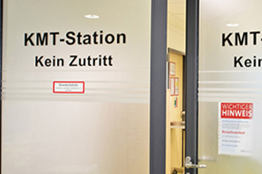 Die Durchführung der allogenen Stammzelltransplantation erfolgt auf der KMT-Station der Medizinischen Klinik III. Die KMT-Station befindet sich im 4. Stock des CIO-Gebäudes und versteht sich als eine Isoliereinheit, wobei das Hauptziel aller Maßnahmen und Einschränkungen die Vermeidung von Infektionen während der therapiebedingten Immunschwäche ist. Die Maßnahmen sind alle zu Ihrem maximalen Schutz wohl überlegt und geplant.