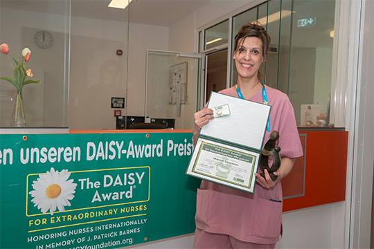 Der DAISY Award würdigt Pflegefachpersonen und Hebammen, die durch ihre fachliche Kompetenz, ihr außergewöhnliches Engagement und ihre menschliche Zuwendung einen besonderen Unterschied im Leben von Patientinnen, Patienten und ihren Familien machen.