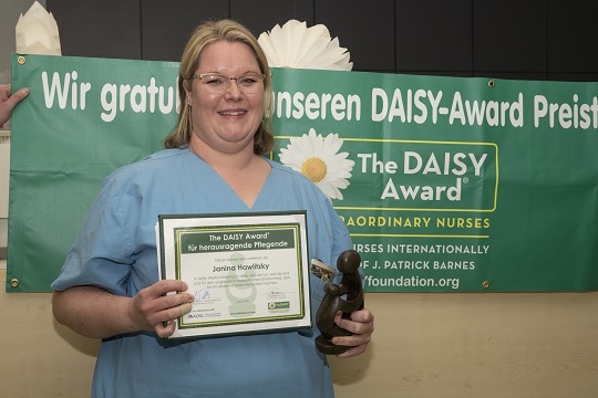 Wir gratulieren Janina Hawlitzky ganz herzlich zu dieser besonderen Auszeichnung und danken ihr für ihr außergewöhnliches Engagement, ihre Menschlichkeit und ihre Vorbildfunktion innerhalb des pflegerischen Teams.
